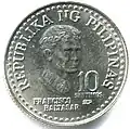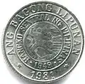 A second coin featuring Baltazar was minted from 1975 to 1983. The name of the Republic was moved to the obverse, and Baltazar now faced the right. On the reverse read the inscription 'Ang Bagong Lipunan'. The issues from 1979 to 1982 featured a mintmark underneath the 10 centavo.