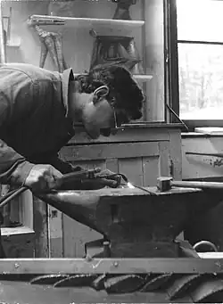 The son of Georgios Tloupas and Vasiliki Batzou, Philolaos was born on 4 March 1923. His father, a carpenter, was his first teacher. He also believed that his grandfather, a boilermaker, although he never knew him, had instilled in him a love of metalworking.[1]