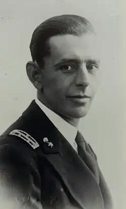 Pietro De Cristofaro was born in Naples in 1900 and entered the Italian Naval Academy in Livorno on 17 September 1914. He graduated in 1919 with the rank of ensign (during the First World War he was embarked on the cruiser Flavio Gioia, used as a training ship). He was promoted to sub-lieutenant on 17 March 1921 and to lieutenant three years later. After a series of assignments on various ships, on 27 August 1927 he was seriously injured in a plane crash near Fiume, while he was serving as an observer on a Savoia-Marchetti S.59 bis seaplane of the 188th Maritime Reconnaissance Squadron. After recovering from his wounds, from March 1928 to April 1929 he commanded the Rome Detachment of the C.R.E.M. (Corpo Regi Equipaggi Marittimi, Royal Naval Crews Corps).[1]