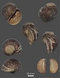 - Tripathy, B.; Sajan, S.; Cowie, R. H. (2019). "Illustrated catalogue of types of Ampullariidae Gray, 1824 (Mollusca, Gastropoda) in the National Zoological Collection of the Zoological Survey of India, with lectotype designations". Zoosystematics and Evolution. 96 (1): 12. Retrieved 1 June 2025.