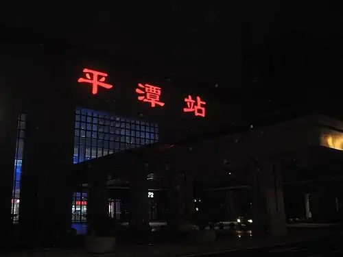 Pingtan railway station is a railway station in Pingtan County, Fuzhou, Fujian, China. Located on Pingtan Island, it is the terminus of the Fuzhou–Pingtan railway. It opened with the line on 26 December 2020.[1][2]