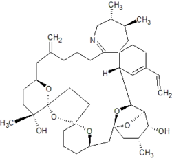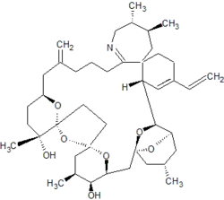Pinnatoxins are part of the cyclic imine group of marine toxins. This group currently consists of pinnatoxins, pteriatoxins, spirolides, gymnodimines, spiro-prorocentimine and portimine. Eight different types of pinnatoxins have been described, named pinnatoxin A to H.[12][13][14][15][16]