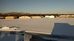 On the north end, there are 7 exhibit hangars, the Fergus Chapel and the Air Academy Lodge. On the south end is the museum/EAA Headquarters. A flight service station relocated from Lone Rock, Wisconsin is also sited at the airport.[3]