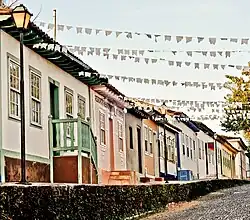 Pirenópolis, also known as Piri,[3] is a historic municipality located in the Brazilian state of Goiás. It is known for its waterfalls and Portuguese colonial architecture, and a popular festival involving mounted horses called Festa do Divino Espírito Santo which takes place 45 days after Easter. Pirenópolis is located 120 km from Goiânia, the state capital, and 150 km from Brasília, the federal capital.