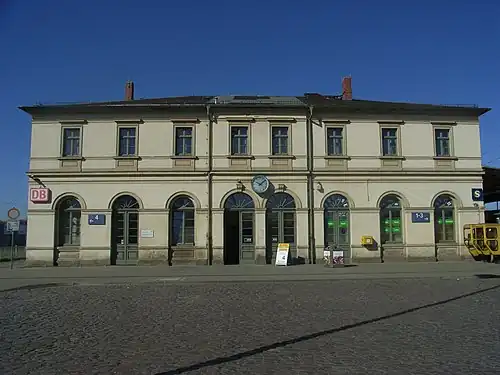 Pirna station is the largest railway station in the town of Pirna in the German state of Saxony. The station is integrated into the network of the Dresden S-Bahn. It is also the starting point of a Regionalbahn service and a Regional-Express stop.