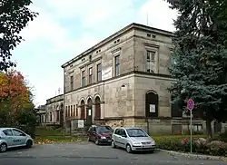 View of the station building, on the north side (right) are platforms 1–3, from which the trains of the Dresden S-Bahn operate. From the south side (platform 4, left), the trains run via Dürrröhrsdorf to Neustadt. The lines to Großcotta and Bad Gottleuba formerly began here.