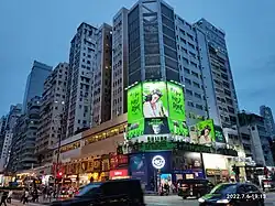 In 1954, Kam Wah Theatre, a theatre-cinema with 2180 seats, commenced at southwest corner of the junction with Canton Road on 21 December, which operated till 21 September 1970. The theatre, of modern appearance with green and buff in colour, was designed by Iu Tak Lam.[66] The area around theatre used to be very crowd with stalls of Dai pai dong next to it.[67] The building was demolished and replaced with Kam Wah Building.[68]