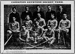 The Keystone club made an auspicious debut by beating the two-time defending champion Pittsburgh Athletic Club in the opening game of the WPHL's 1900–01 season. Keystone continually strengthened its team during the season but finished second to the PAC, which did not lose another league game on its way to a third consecutive title.[2][6] Aside from league play, the WPHL teams also played exhibition games against some of the best amateur teams from North America.[7]