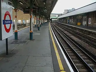 Plaistow (/ˈplɑːst/ PLAHST-oh or /ˈplæst/ PLAST-oh[6][7]) is a London Underground station on Plaistow Road in the London Borough of Newham in Greater London. It is on the District and Hammersmith & City lines between West Ham and Upton Park stations, and is located in Travelcard Zone 3.
