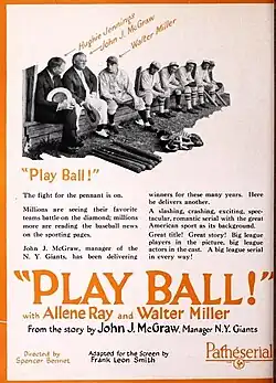 Play Ball is a 1925 American drama film serial directed by Spencer Gordon Bennet and starring Walter Miller and Allene Ray. The film is now considered to be lost.[1] Another 1925 film, a comedy short starring Chester Conklin and Milburn Morante, also used the title Play Ball.