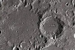 By convention these features are identified on lunar maps by placing the letter on the side of the crater midpoint that is closest to Playfair.