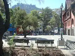 Plaza Camilo Mori (Camilo Mori Square) is located in the commune of Providencia, in Santiago, Chile, between the streets of Constitución and Antonia López de Bello, in the heart of Barrio Bellavista. One block away is Pio Nono street, which leads to the Chilean National Zoo and San Cristóbal Hill. Plaza Camilo Mori is also an important meeting place for bohemian culture in Santiago,[1] where important places such as the house-museum of Pablo Neruda (known as La Chascona),[2] the Centro Mori, pubs and restaurants spreading from the plaza south along Constitución street and above all, a great number of workshops, theatres and cultural centers can be found. Nemesio Antúnez, Pablo Neruda, Mario Baeza and Camilo Mori are examples of how artists have given their names to this part of Barrio Bellavista. Access to the square is via station Baquedano of the Santiago Metro.