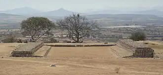 Plazuelas is a prehispanic archaeological site located just north of San Juan el Alto, some 2.7 kilometers (1.7 miles) north of federal highway 90 (Pénjamo-Guadalajara), and about 11 kilometers (6.8 miles) west of the city of Pénjamo in the state of Guanajuato, Mexico.[1] The site is open to the public; it is dominated by a large, rectangular plaza with several pyramidal structures and platforms, along with a massive ball court. To the north of the structures is a field of boulders with thousands of glyphs carved into them.