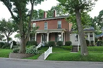 The Italianate style is found in the porch, vestibule, round-headed window on the main facade, and the bracketed eaves of the house. It also has a low pitched roof, Palladian window, and symmetrical interior chimneys that are more typical of the Georgian style. This combination of styles is an example of the fluidity and variety of the architecture found in Iowa's river towns.[3] The inclusion of the Georgian style reflects the continuity between the frontier areas and the established settlements of New England from which the early settlers came.