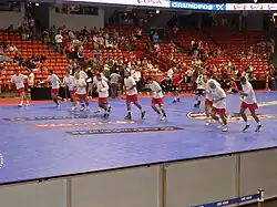 The Poland men's national handball team is controlled by the Polish Handball Association (Związek Piłki Ręcznej w Polsce), and represents Poland in international matches.[1]
