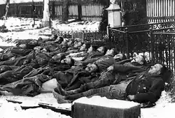 According to Polish claims an unspecified number of Polish POWs were also killed in the village of Bystřice and a number of civilians killed in Karviná.[21] Several thousand people were forced to flee to Poland, who returned in 1938 with the Polish annexation of Trans-Olza and in turn started taking revenge on the local Czech populace. There is a monument in Orlová, commemorating the Czech victims of the war.