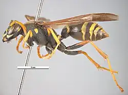 Polistes chinensis is a polistine vespid wasp in the cosmopolitan genus Polistes, and is commonly known as the Asian, Chinese or Japanese paper wasp. Approximately 300 species of paper wasps have been identified worldwide. Polistes chinensis is found in East Asia, in particular China and Japan. The subspecies P. chinensis antennalis is an invasive species in New Zealand,[2] having arrived in 1979,[3] and more recently Australia.[4]