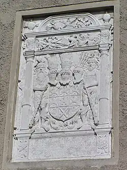 Coat of arms of the House of Pomerania at Pudagla palace, the secularized former Usedom Abbey