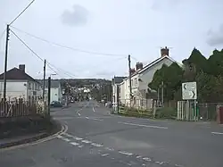 The railway was originally a freight only line,[3] built on the route of the old Kidwelly and Llanelly Canal and prone to flooding, but stations were established due to pressure from the public, Pontyates being a significant size due to the number of collieries in the area. The freight service continued for coal traffic until 1996 by which time the last of the local collieries had closed down.[4][5] In 2011 a single track line was still is situ and the platform on the eastern side was present but all the station buildings had been demolished. Bridgend and Rhwyth public houses stood nearby.