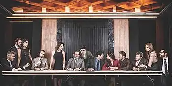 Main characters of the telenovela. From left to right includes Moisés Arizmendi, Pablo Valentín, Eva Cedeño, José María Torre Hütt, Altair Jarabo, Guillermo García Cantú, Víctor García, David Zepeda, Ana Brenda Contreras, Julián Gil, Sergio Basañez, Ilithya Manzanilla, and Manuel Balbi.