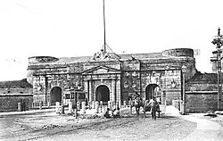 Michele Sanmicheli was appointed as the engineer in charge of the fortifications of Verona ("inzener sopra le fabriche"), with the appointment occurring in October 1530 but becoming effective in May 1531.[4] Following this, work on the military structures progressed more rapidly.[5] Sanmicheli's first intervention was the design of the bastion of the Holy Trinity, which began in the year after his appointment. This was followed by work on the bastions of Riformati, San Bernardino, San Zeno, Spagna, and San Francesco, along with a series of intermediate artillery emplacements, including that of the cavalier of San Giuseppe.[6] His efforts also led to the creation of three city gates: Porta Nuova, was completed in 1532, followed by Porta San Zeno in 1541 and Porta Palio in 1547.[4][6]