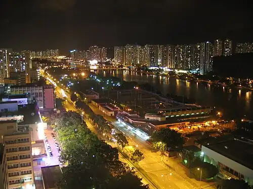 Sha Tin (沙田) at night.