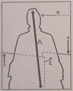 Portrait of Madame Cézanne was exhibited along with works such as Man with Folded Arms at Lichtentein's first Pop exhibition in Los Angeles.[1] The linear twice-removed black-and-white (along with Man with Folded Arms) is regarded as a quotation of Erle Loran's outline diagram of Cézanne's compositional methods[2] published in a diagram book called Cézanne's Composition.[3] The book was popular in the academic community.[4] Loran's representation in a "harsh black outline" depicted the axes of the composition without representing the "texture and expressiveness of Cézanne's original." In fact, Loran stated that "this diagrammatic approach may seem coldly analytical to those who like vagueness and poetry in art criticism."[5] Loran's diagrammatic techniques were standard at the time; redrawn outlines of the figure were illustrated with alphabetized arrows to identify areas and directions. The diagram highlighted body part positioning without studying the painted surface.[6]