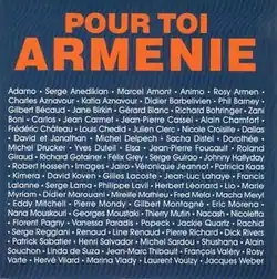 "Pour toi Arménie" (English translation: "For You, Armenia") is a 1989 song written and composed by Charles Aznavour, and recorded by a group of French singers (and also a few actors and TV presenters) who were popular at the time. This charity single was intended to raise funds to help the Armenians who experienced the 1988 Spitak earthquake. It sold more than 1 million copies under the Trema-EMI label.[1]
