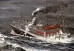 Water entered her boiler room, causing some of her boilers to explode, and she lost power. The ship listed to starboard and soon capsized. She sank in five minutes, killing at least 445 of the 588 people aboard.