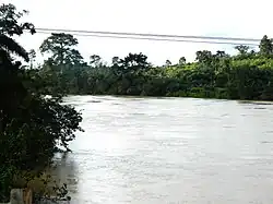 The Pra River is a river in Ghana, the easternmost and the largest of the three principal rivers that drain the area south of the Volta divide. Rising in the Kwahu Plateau near Mpraeso and flowing southward for 240 km (149.129 mi) through rich cocoa and farming areas and valuable forests in the Akan lowlands, the Pra enters the Gulf of Guinea east of Takoradi.[1] In the 19th century, the Pra served as the border between the Ashanti Confederacy and the Gold Coast.