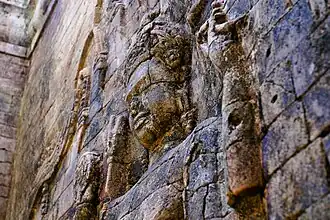 Prasat Kravan (Khmer: ប្រាសាទក្រវាន់) is a small 10th-century temple consisting of five reddish brick towers on a common terrace, at Angkor, Cambodia, south of the artificial lake (baray) called Srah Srang. Its original Sanskrit name is unknown. The modern name in Khmer, "Prasat Kravan", means artabotrys odoratissimus temple. The temple was dedicated to Vishnu in 921 CE,[1]: 70 according to an inscription on doorjambs.[2]