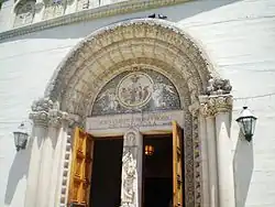 Above the entrance is Sheet's Seven Sacrament Mosaic, donated in the 1950s. Since the church is very intricately decorated, you can closely see 3-leaf clovers above the confessionals and rams along the side pillars of the nave. Decorative turtles on each side of the front exterior entrance near the cornerstone are featured.