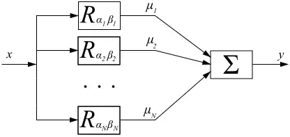 The Preisach model consists of many relay hysterons connected in parallel, given weights, and summed. This can be visualized by a block diagram: