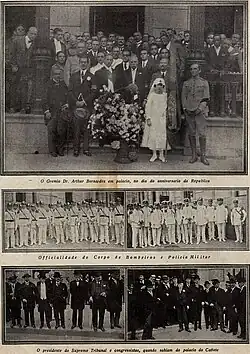 Bernardes, leader of the Republican Party of Minas Gerais, was the candidate of the federal government, Minas Gerais, and São Paulo in the 1922 presidential election, chosen in spite of other states.[6] Rio de Janeiro, Rio Grande do Sul, Pernambuco and Bahia came together in the Republican Reaction and launched the opposition candidacies of Nilo Peçanha, from Rio de Janeiro, for president, and J. J. Seabra, from Bahia, for vice president.[7] The campaign was fierce.[8] The election was one of the few tightly disputed ones in the First Republic and the opposition accused the results of fraud.[9] The Copacabana Fort revolt attempted to prevent Bernardes' inauguration and the government declared a state of emergency in response.[10][11]