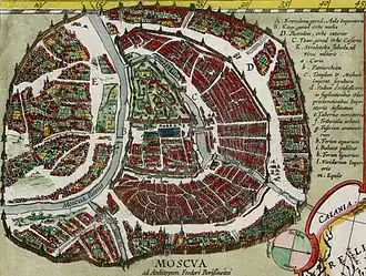 On September 12, Petro Sahaidachny received a letter from prince Władysław notifying that he was leaving Mozhaisk for Moscow, and ordered the hetman to immediately head for the Simon's Monastery.[7] The next day, a Cossack council was gathered, where it was decided to begin a raid on Moscow on September 14, without waiting for Fedir Boryspolets' return. The Cossacks also decided not to seize Kashira and focus on preparing for the crossing near Zaraysk. On September 15–16, the Cossacks laid siege to Zaraysk, while concentrating the troops near the confluence of Osyotr and Oka rivers and preparing for the crossing.[8]