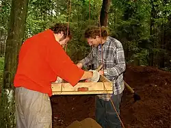 Grave goods recovery: sand sieving at site 3. Lubieszewo (2006)