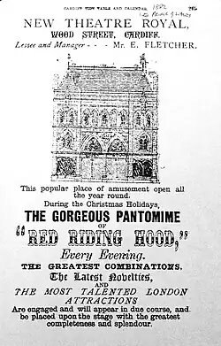 - ^ a b "The New Theatre Royal, Cardiff". Western Mail. 1 October 1878. p. 4 – via British Newspaper Archive.