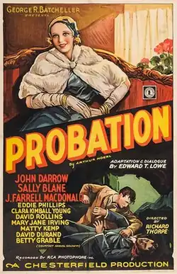 Probation (also known as Second Chances) is a 1932 American pre-Code film directed by Richard Thorpe and starring Clara Kimball Young and Betty Grable.[1] The film was distributed by the Chesterfield Motion Pictures Corporation. Betty Grable is on the verge of becoming a superstar, in the 1940s.[2][3]