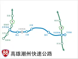 Provincial Highway 88 (Chinese: 台88線) is an expressway, which begins in Fongshan District, Kaohsiung on National Highway No. 1 and ends in Zhutian Township, Pingtung County on Yong-an Road.