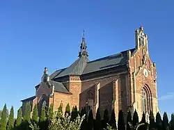 Jan Długosz, a Polish chronicler, confirms that a Roman Catholic parish existed in the village as early as 1326. Since then, the village was predominantly Catholic with a small Jewish minority, except for a brief period around the turn of the 16th century, when the local nobility, including the owners of the village, the Wierzbieta family, converted to Arianism. In 1580 the parish priest was expelled from the village and the church gradually fell into disrepair and was eventually demolished. In 1612 the Wierzbieta family converted back to Catholicism and provided funds for the construction of a new wooden Church of St. Nicholas, which stood until the end of the 19th century. In 1901–1906 a new Church of St. Nicholas was built in brick with stone dressings, to a design by the architect Teodor Talowski, which is a spectacular example of neo-Gothic architecture.