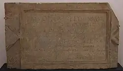 Our primary source for the life of Betuinianus is an inscription from Tangi (modern Tangiers, Morocco).[1] It was found there by Fernando de Mascarenhas, Count of Torre, who was the Portuguese Governor of Tangiers from 1628 to 1637; his name is cut in the frame of the inscription with the date of its discovery, 1634. He took the stone to his castle, where it was seen by T. Smith in 1668; it was later purchased by Sir Hugh Cholmley who presented it to Oxford University. Currently part of the collection of the Ashmolean Museum, the inscription is on display in the Randolph Gallery.[2]