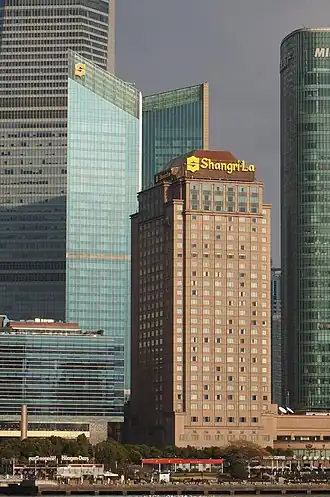 Pudong Shangri-La, East Shanghai, often abridged as Pudong Shangri-La, is a hotel located at 33 Fucheng Lu (富城路33号, 近银城东路) in Pudong, Shanghai, China.[1][2][3][4][5] It is part of the Shangri-La Hotels and Resorts chain.