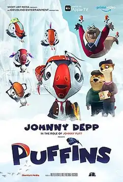 Puffins is an animated television series targeted at children created by Danielle Maloni and Peter Nalli. It is a spin-off of the film Arctic Dogs (2019) and stars Johnny Depp. It follows five Puffins: Johnny Puff (Depp), Tic, Tac, Didi, and Pi who work for the wily walrus Otto. The show is produced by Iervolino Entertainment owned by Andrea Iervolino and Monika Bacardi, and ILBE Studios based in Serbia. It consists of 250 episodes of five-minute episodes and was released on Apple TV and Amazon Prime Video in December 2020. A spin-off of Puffins, entitled Puffins Impossible, was released in April 2022, with Depp reprising his role as Puff.