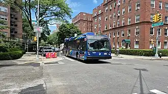 From 2014 to 2025, the Q23 was based out of the College Point Depot due to plans for the Q53 to become a Select Bus Service route. On September 23, 2017, the route of the Q23's terminal loop in Forest Hills was reversed. The new route runs southwest on Union Turnpike, north on Woodhaven Boulevard, and east on Metropolitan Avenue. The bus route's layover area is now on the north side of Union Turnpike.[40] The change took place in conjunction with Select Bus Service improvements to Woodhaven Boulevard, which resulted in the left turn from southbound Woodhaven Boulevard to eastbound Union Turnpike being banned. Queens Community Board 6 members had objected to some parts of the left-turn ban, citing that the loop served some stores and the Forest Park Crescents cooperative apartment development.[41][42]