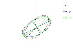 The basic QR algorithm can be visualized in the case where A is a positive-definite symmetric matrix. In that case, A can be depicted as an ellipse in 2 dimensions or an ellipsoid in higher dimensions. The relationship between the input to the algorithm and a single iteration can then be depicted as in Figure 1 (click to see an animation). Note that the LR algorithm is depicted alongside the QR algorithm.