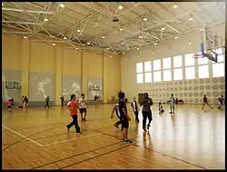 The newly built school offers students a much broader spectrum of extra-curricular activities. The facility contains a fully functional 400m track with proper markings. Inside the track is an official size soccer field, made from synthetic grass and rubber bits. Adjacent to the track is a Long Jump Pit and an outdoor tennis/basketball court.[9]