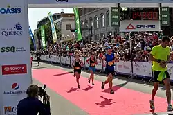 The Beneva Quebec City Marathon (French: Marathon Beneva Québec), is an annual point-to-point Boston Marathon qualifying marathon (42.195 km/26.219 mi) race between Lévis and Quebec City, Quebec, Canada.[1] It has been held in August every year since 1998 and currently can reach up to 12,700 participants in all of the events combined. Along with the full marathon, a half marathon, a 10 km, a 5 km and children's events are arranged as well.[2]
