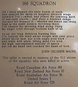 It took its name from the village of Kirmington nearby; the most notable squadron posted there was No. 166 Squadron RAF[2] and a memorial plaque to the members of that unit is in the parish church. The airfield opened in January 1942 [3]