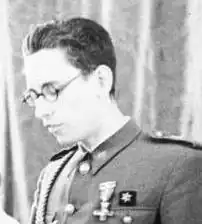 In July 1936 the Gambras were spending their summer holidays in Roncal, where they were caught by the military coup.[26] As a 16-year-old Rafael volunteered to the Requeté unit of Tercio de Abárzurza,[27] in few days time taking positions at Alto de León pass[28] and attempting to break through Sierra de Guadarrama.[29] José Ulíbarri, the Catholic parish priest from Úgar and temporary commander of the unit, remained Gambra's friend and sort of mentor for life.[30] He spent the next 2 years at the stationary frontline in the Sierra, until in July 1938 he left to attend alférez provisional training.[31] In February 1939 he was seconded to Tercio del Alcázar,[32] commanding a platoon in the 4. Infantry Company.[33] Having reached Lliria at the moment of Nationalist victory,[34] he was decorated with many military awards.[35]