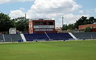 The Ragsdale Tigers compete in the Piedmont-Triad 4-A Conference.[6][7] Ragsdale fields teams in baseball, basketball, cheerleading, cross country, football, golf, lacrosse, soccer, softball, swimming, tennis, track (indoor and outdoor), volleyball, and wrestling. Past principal, Dr. Kathryn Rogers, received the Bob Deaton Principal of the Year Award from the NCHSAA's (North Carolina High School Athletic Association) annual meeting in Chapel Hill in early May 2010.[8]